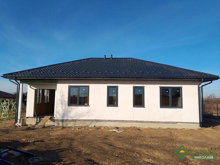 Этот дом уже готов для внешних работ: все коммуникации проведены, и осталось только завершить внутреннюю отделку. Площадь дома составляет 120 м². Кроме того, это индивидуальный проект, что значит вы тоже можете описать нам дом своей мечты, и мы разработаем для вас уникальный проект.