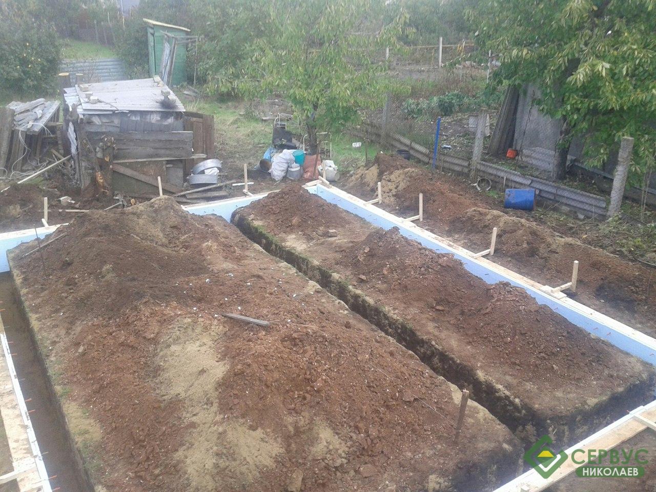 Фундамент дома монолитный ж/б. Такой фундамент предполагает минимальное количество земляных работ и затраченного времени, при всех своих достоинствах это отличный выбор.