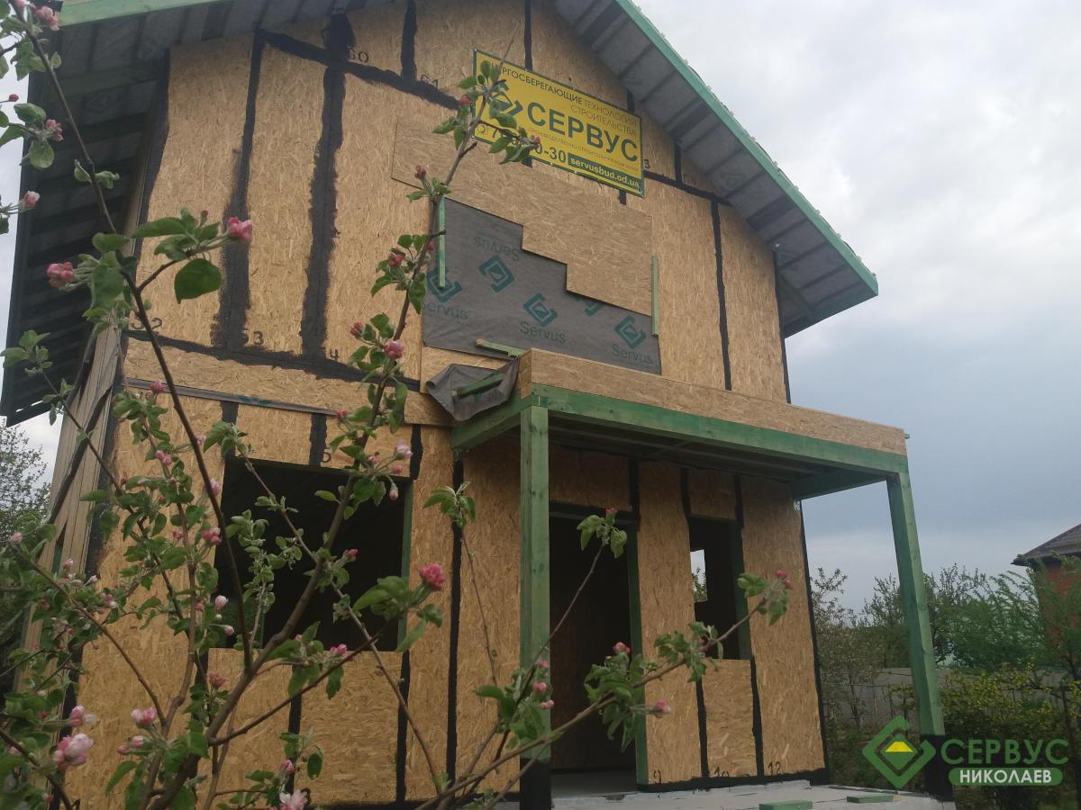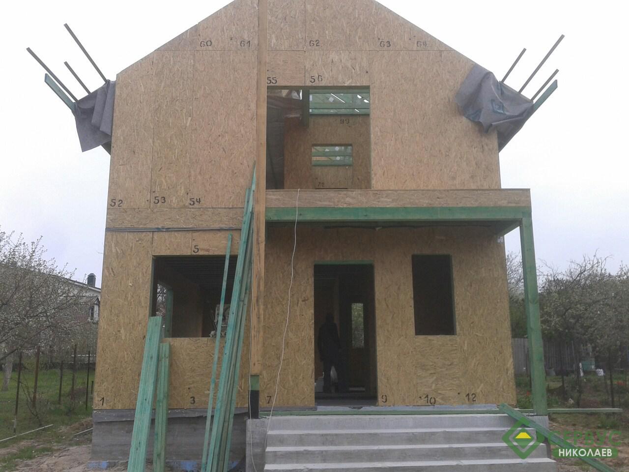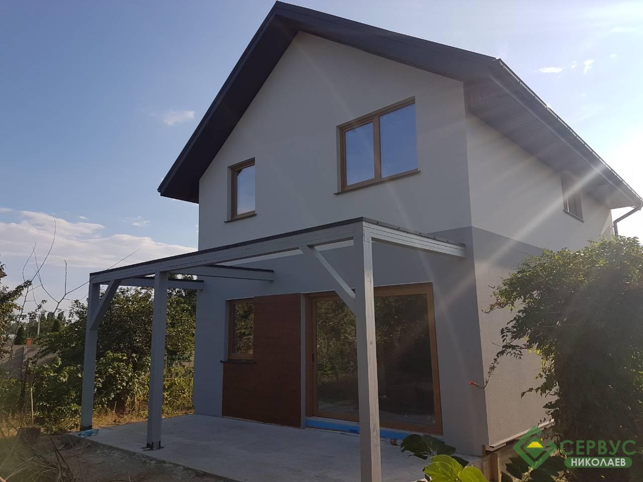 Двухэтажный дом построен в Николаеве. По желанию нашего заказчика нашими архитекторами был разработан индивидуальный проект и площадь дома составляет всего 93м2 к дому пристроена небольшая терраса площадью 14м2.