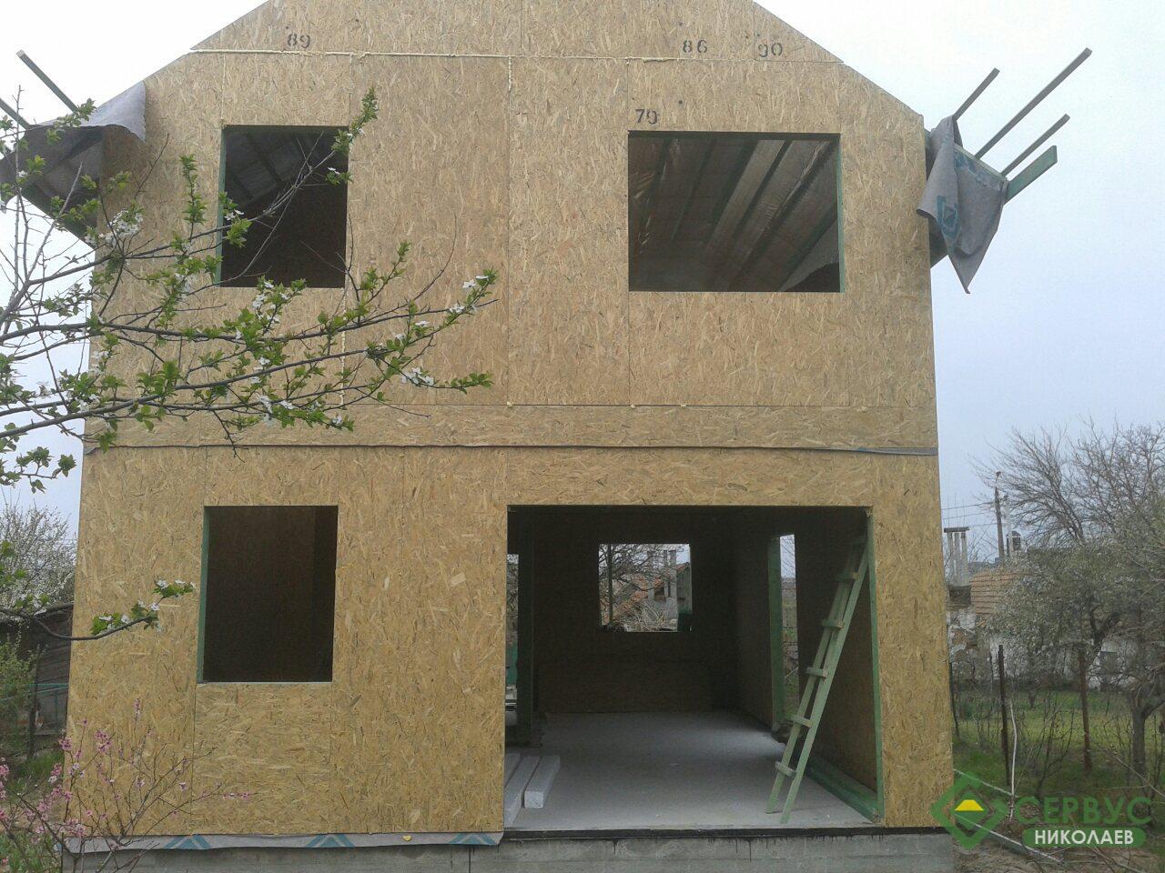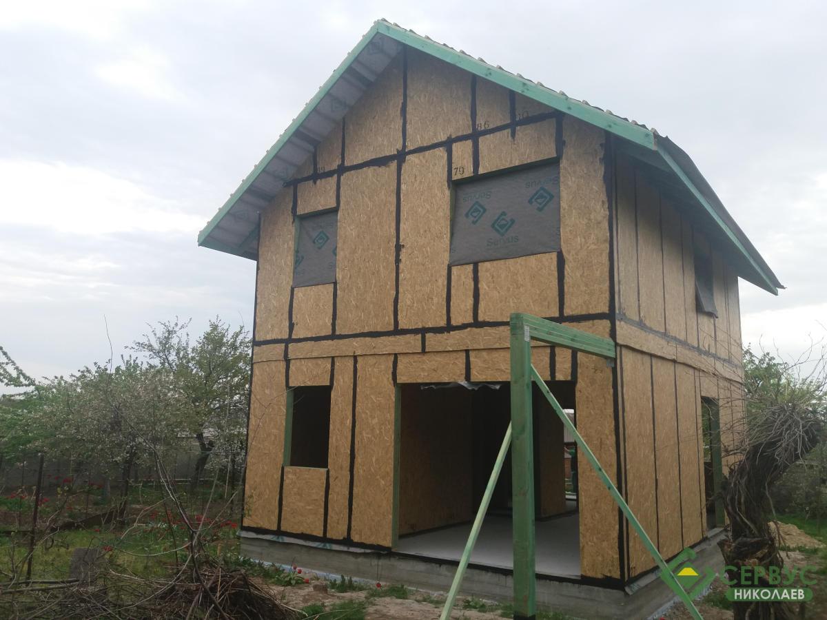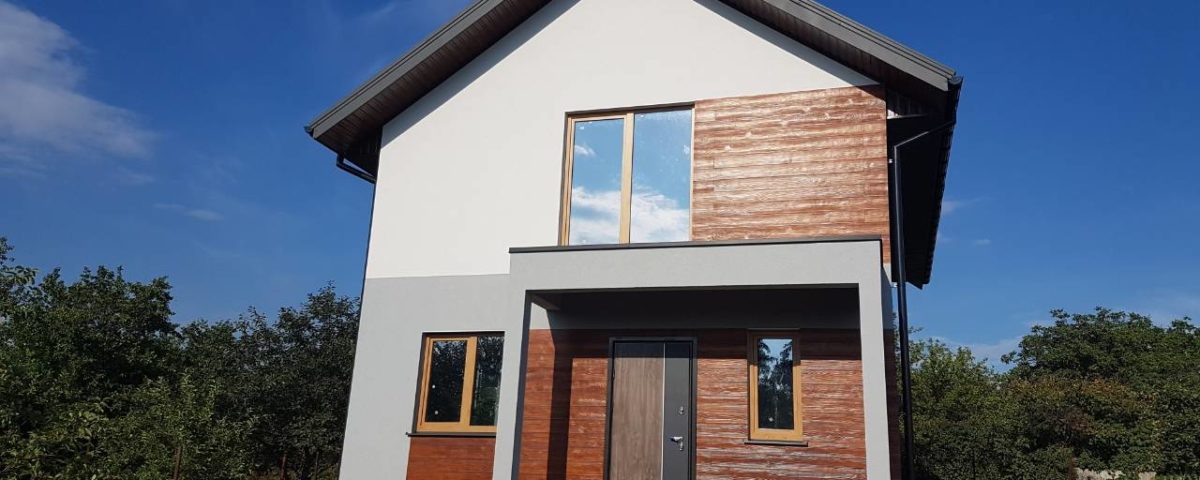 Двухэтажный дом построен в Николаеве. По желанию нашего заказчика нашими архитекторами был разработан индивидуальный проект и площадь дома составляет всего 93м2 к дому пристроена небольшая терраса площадью 14м2.
