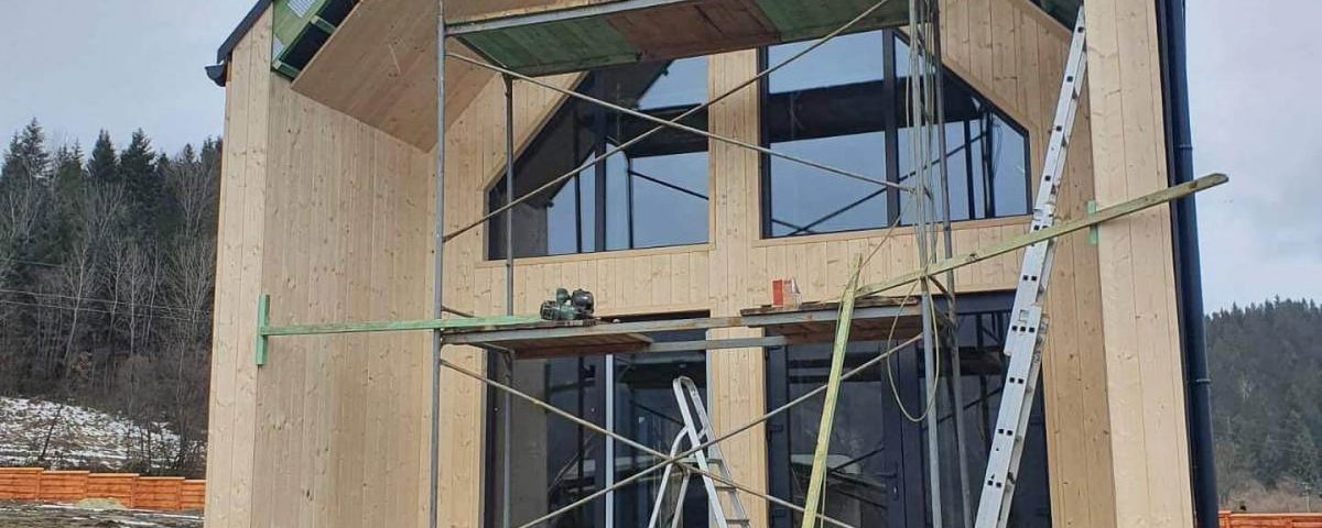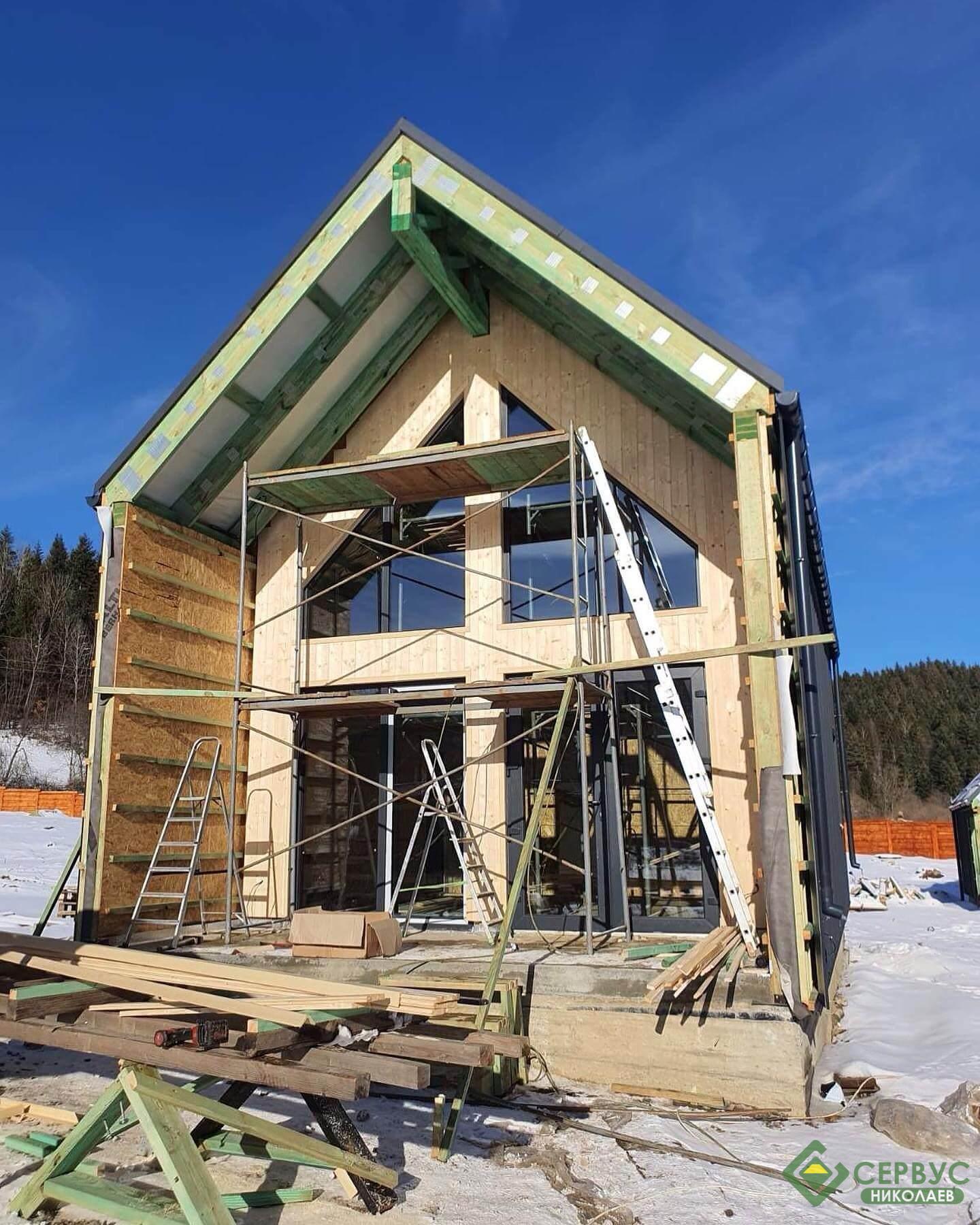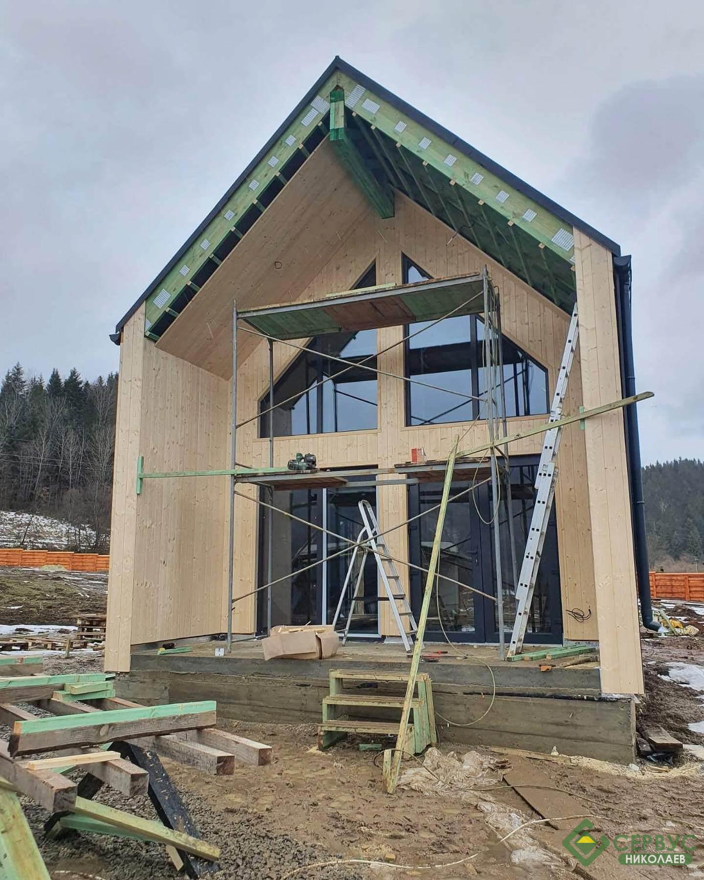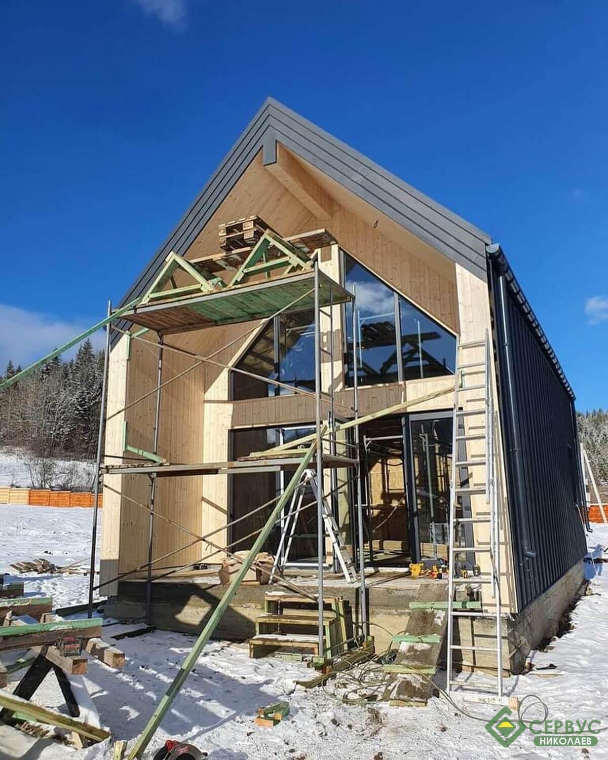 Наши специалисты построили еще один дом Сервус в стиле барнхаус, прямо сейчас заканчивают фасад. Очень хороший современный дом площадью 75 м. кв.
