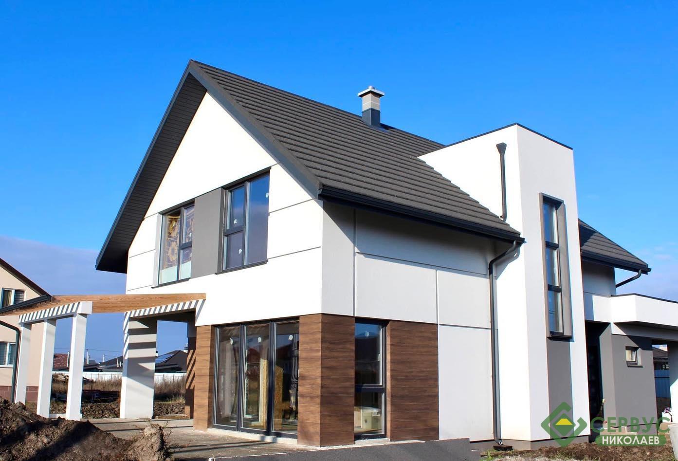 Этот дом специалисты Сервус построили совсем недавно и за основу был взят наш типичный проект «Берта», который архитекторы Сервус адаптировали под все пожелания клиента.