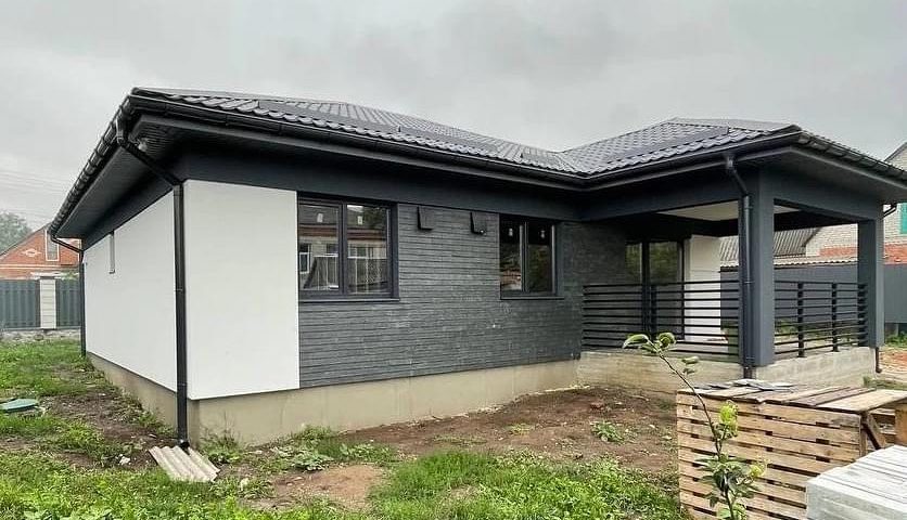 Строительство этого дома площадью 101м2 специалисты Сервуса начали в июле и вот как он выглядит сегодня. Как видите, снаружи дом полностью готов, остались только внутренние работы и можно заселяться. Никакая другая технология строительства не позволит Вам построить дом так быстро и надежно!