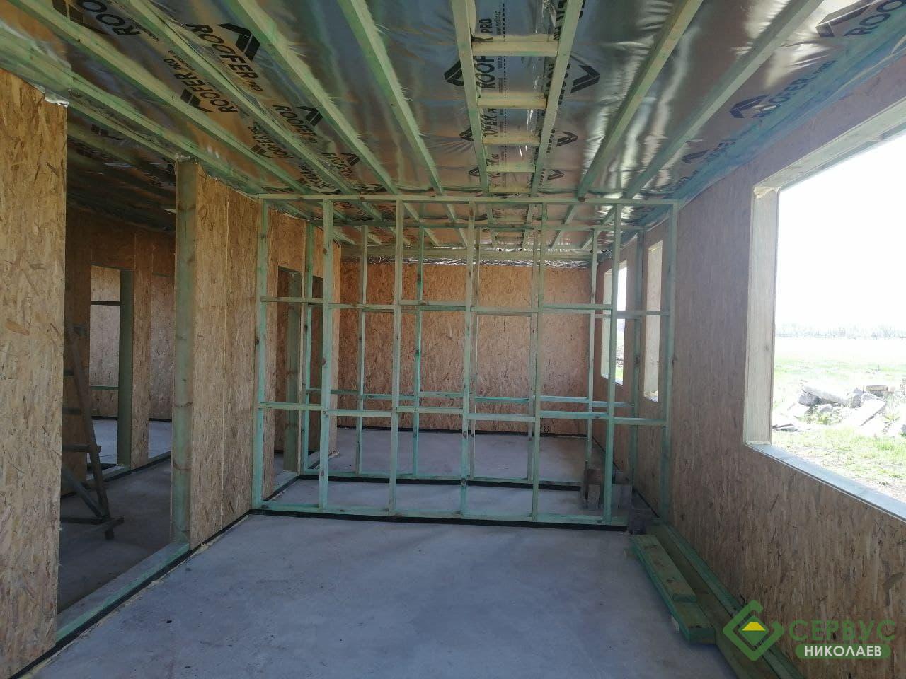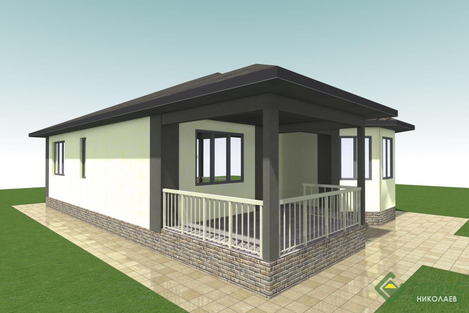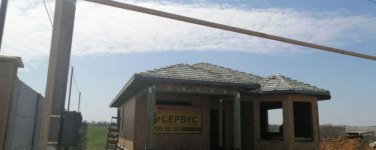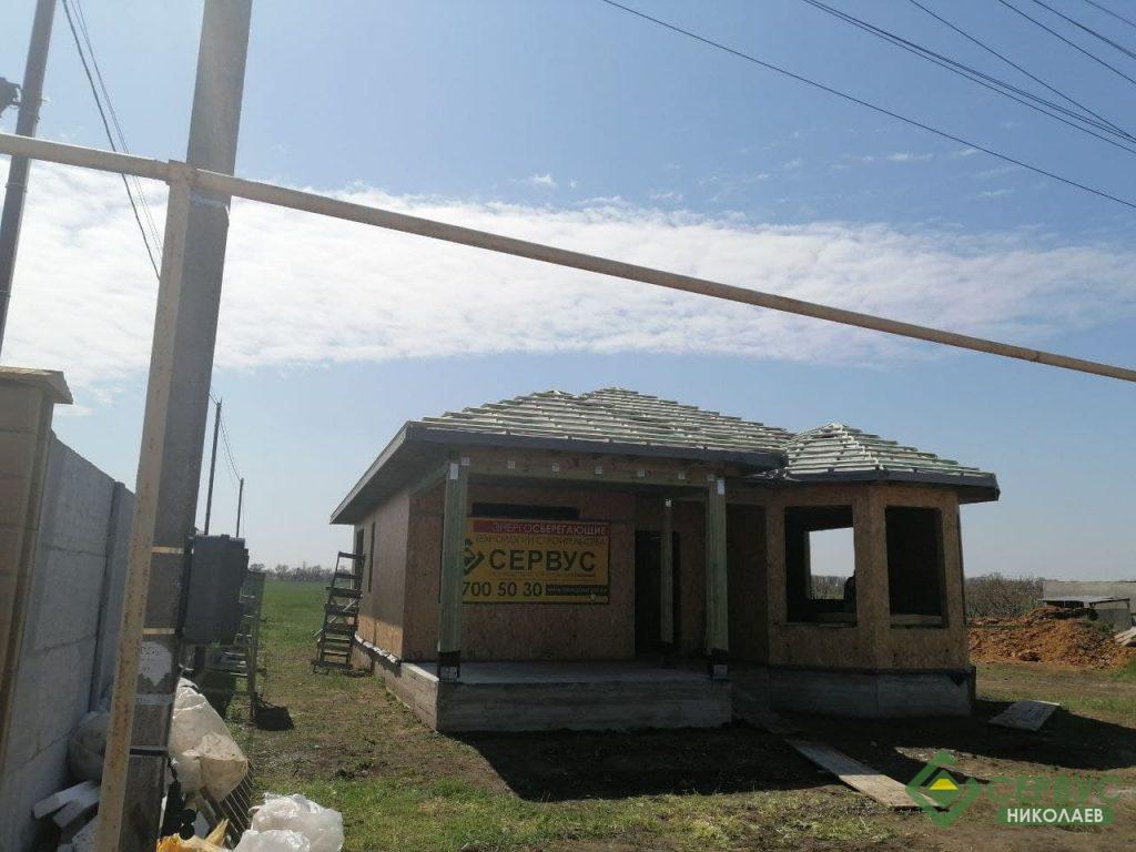 Еще один энергосберегающий дом мы построили в селе Нерубайское. Наш заказчик выбрал самый популярный проект с нашего сайта — «Гелиос». В проект добавили в террасу и общая площадь увеличилась до 100м2.