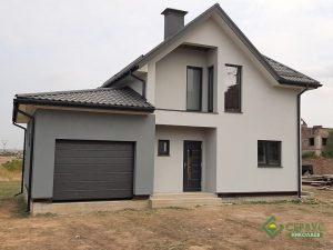 Проект дома индивидуален, который наши архитекторы разработали в соответствии со всеми пожеланиями клиентов. На первом этаже кухня-гостиная, спальня, гараж, техническое помещение, котельная, санузел и терраса. А на втором этаже еще две спальни, санузел, ванная, гардероб и балкон.