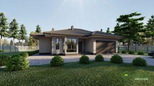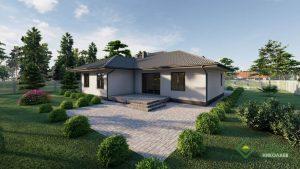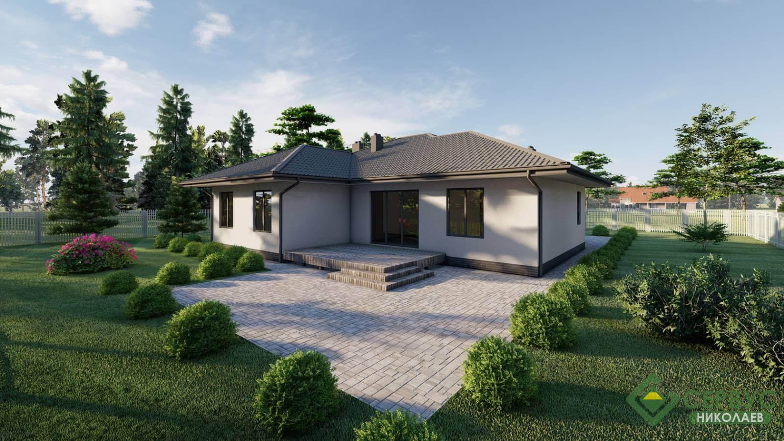 Дом, площадью 170 м2, разработан по индивидуальному проекту. Дом рассчитан для большой семьи и вместил в себя четыре спальни, три сан. узла, большую кухню, просторную гостиную и гараж на 2 авто. Из гостиной можно выйти на террасу, расположенную на задней части дома. Планировку и визаулизацию дома мы прикрепили