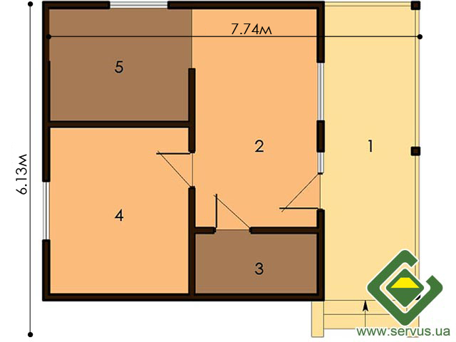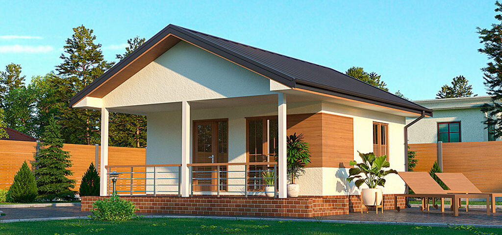 Компактный одноэтажный дом с рациональной планировкой, идеально подойдет для маленького участка.