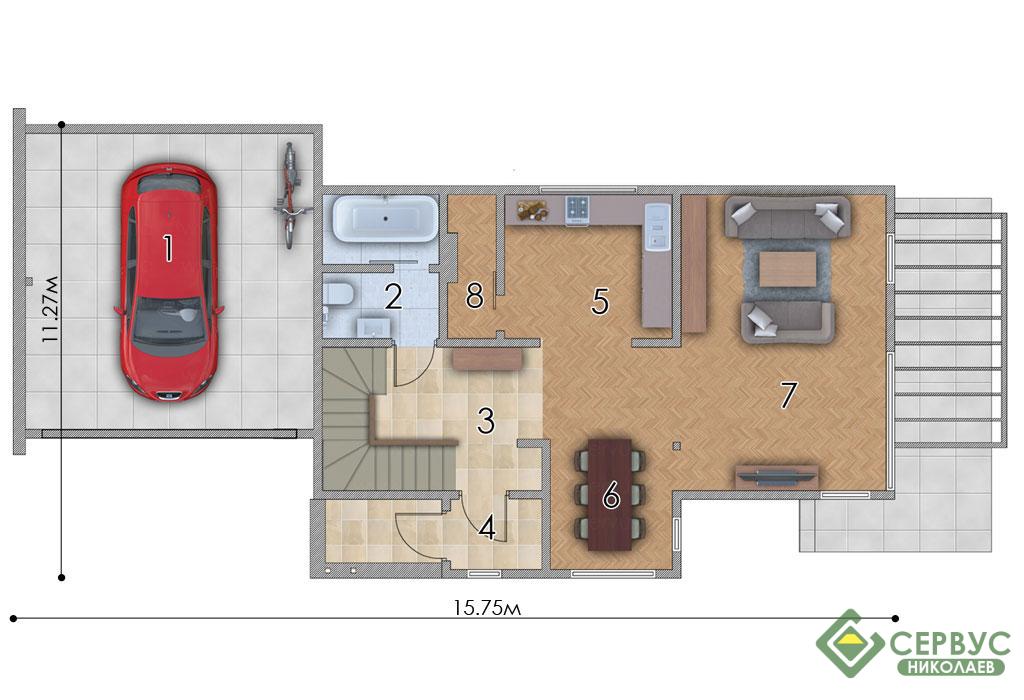 | 1. Гараж | 32,97м2 |