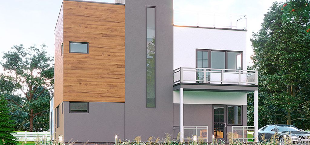 Двухэтажный красивый дом в стиле хай-тек с большими комнатами.