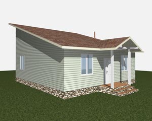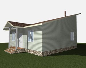 Простой в строительстве дом с односкатной крышей, подойдет, также, для узкого участка.