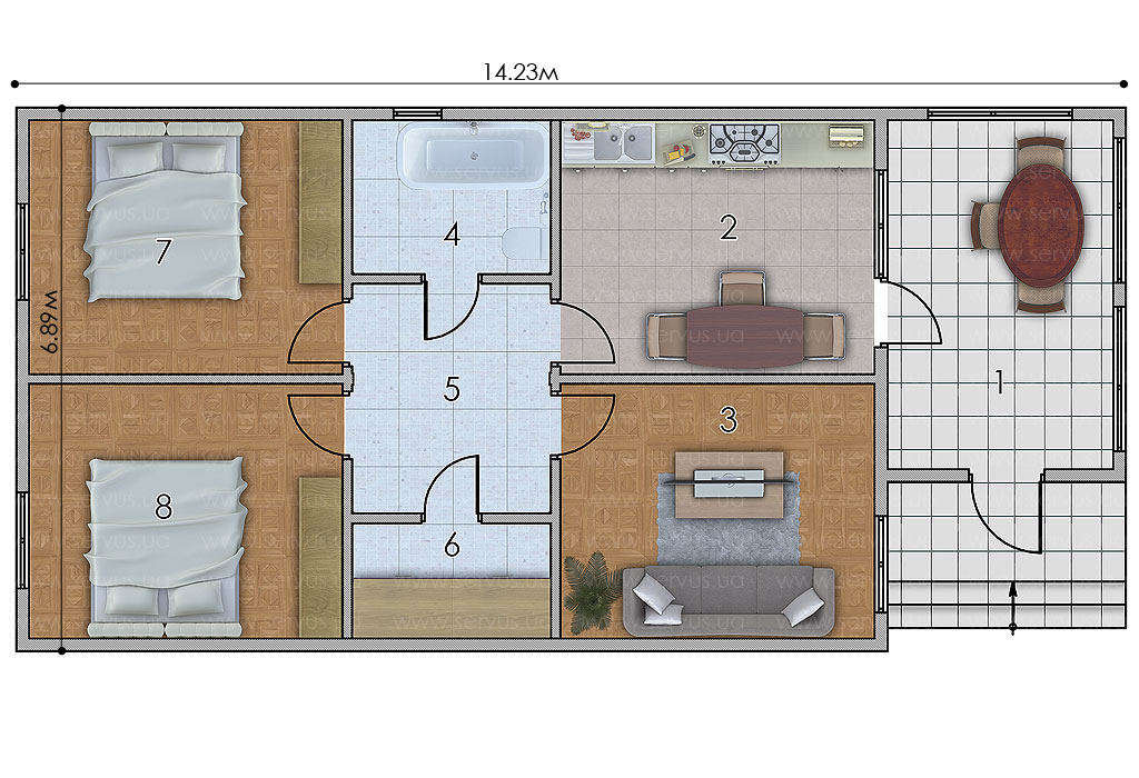 6,89м х 14,23м