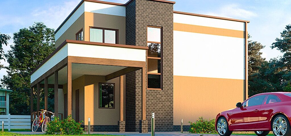 Стилистику проекта дома Камерон выделяют простота и высокая эстетика кубических форм, отличительная для тенденций современной архитектуры. . Современный вид здания, создает интересные, просторные возможности интерьера, ожидает декорирования.