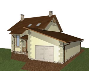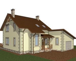 Красивый двухэтажный дом с гаражом и эркером для лестничной клетки, практичный и удобный.