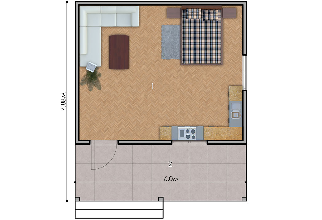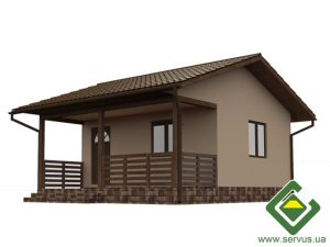 Дори — компактный дачный дом с большой террасой. Простая конструкция позволяет возвести такой дом в короткие сроки, и добавляет ему легкости и воздушности.