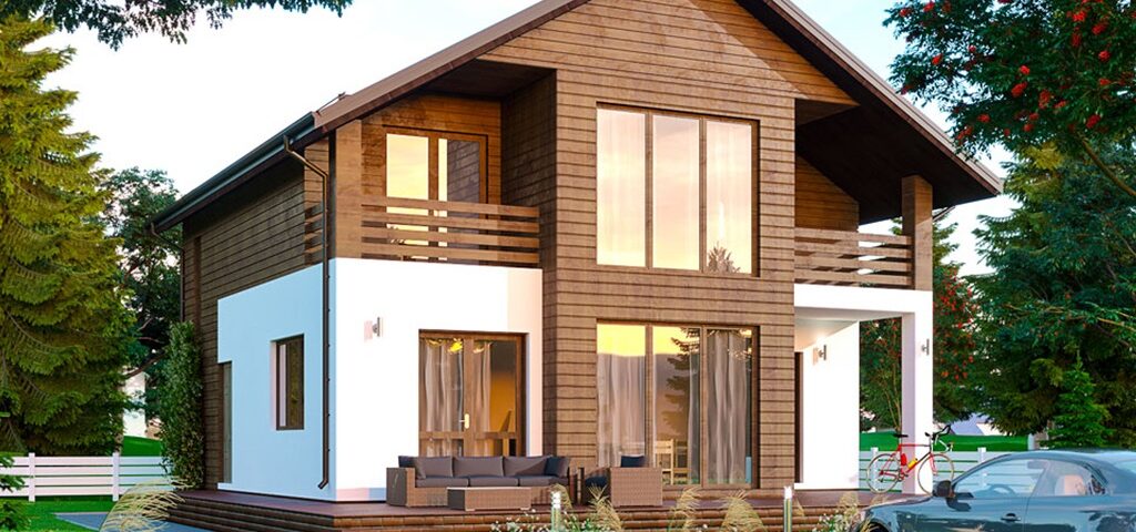 Проект Эмилия является воплощением функциональности и экономичности. Уникальный стиль и характер дома заключается в идеально подобранном сочетании элементов мягкого дерева и штукатурки на фасаде.