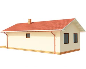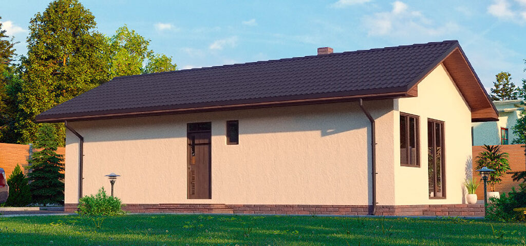 Компактный одноэтажный дом с просторными комнатами, идеально подойдет для узкого участка.