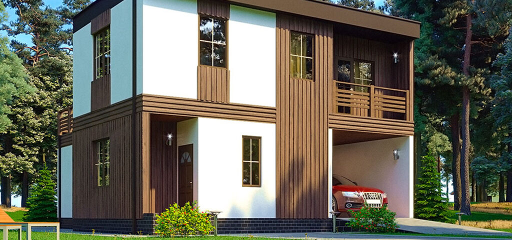 Строгий, стильный и уютный двухэтажный дом с балконом и гаражом.