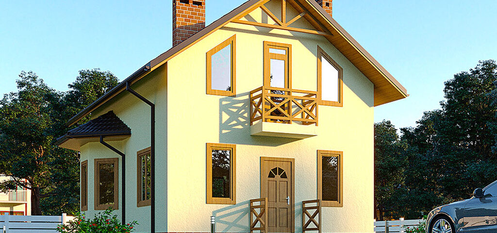 Двухэтажный дом с двумя балконами. Проект прекрасно подойдет для загородного жилья для небольшой семьи.