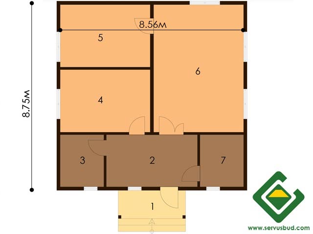 Одноэтажный дом. Большие комнаты, просторная гостиная, — роскошный и не дорогой загородный дом.