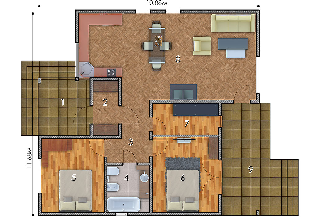 11,68м х 10,88м
