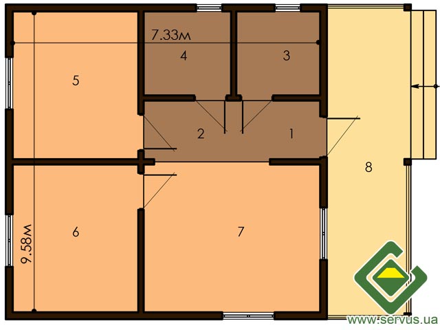 9,58м х 7,33м
