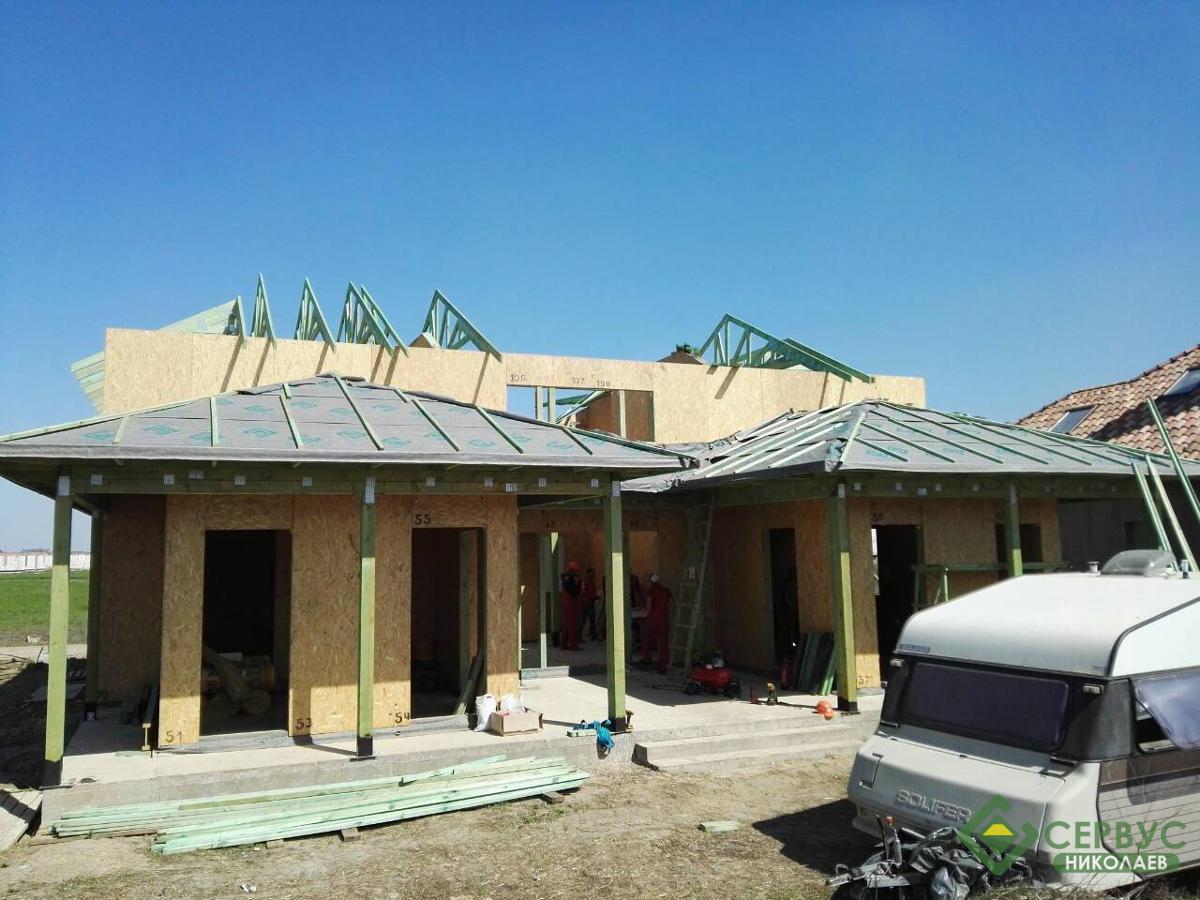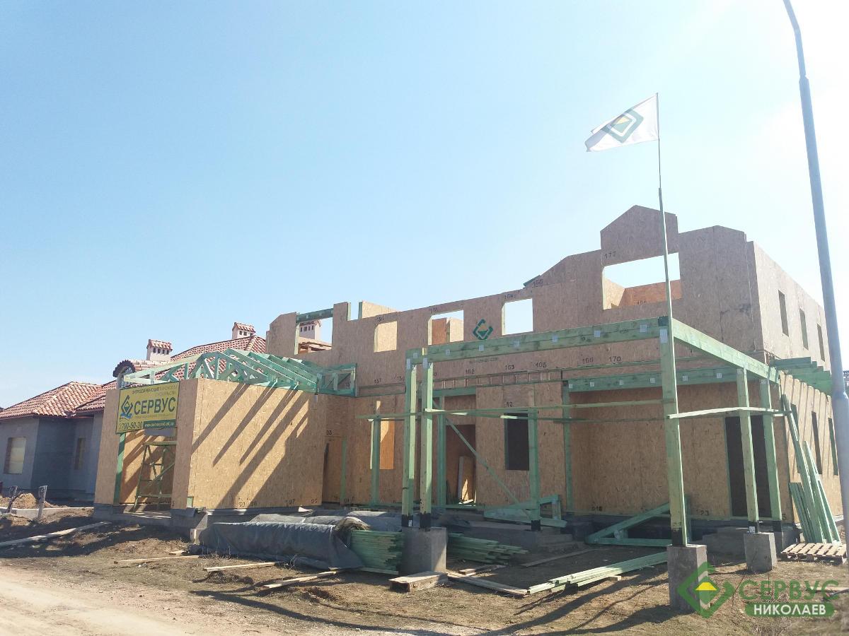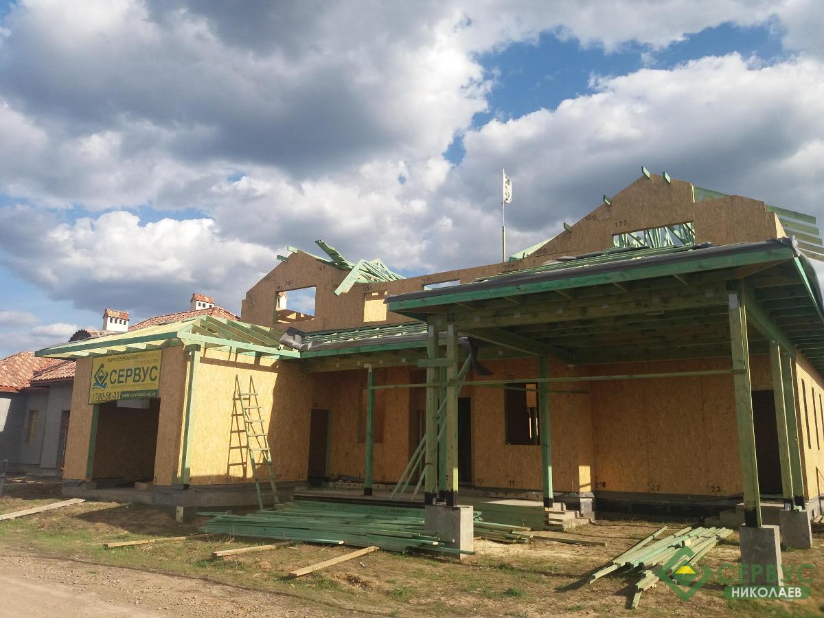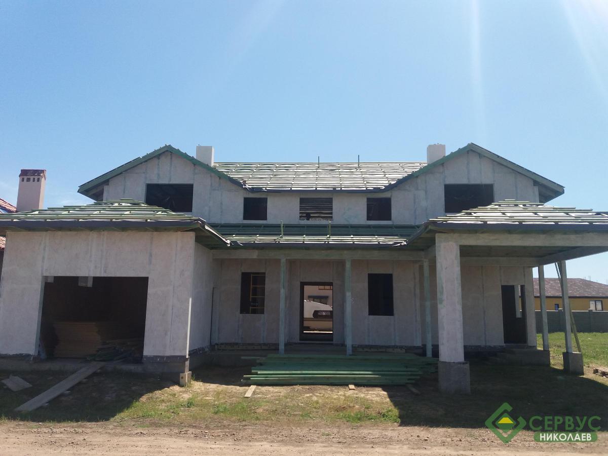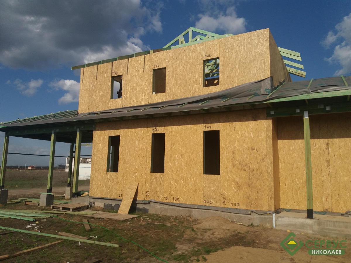 Домокомплект собран за несколько недель и выполнен из Сип панелей толщиной 164мм, на крыше битумная черепица премиум качества. И уже запланированы внутренние и внешние отделочные работы.