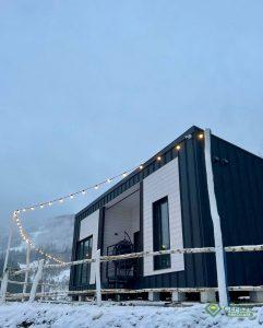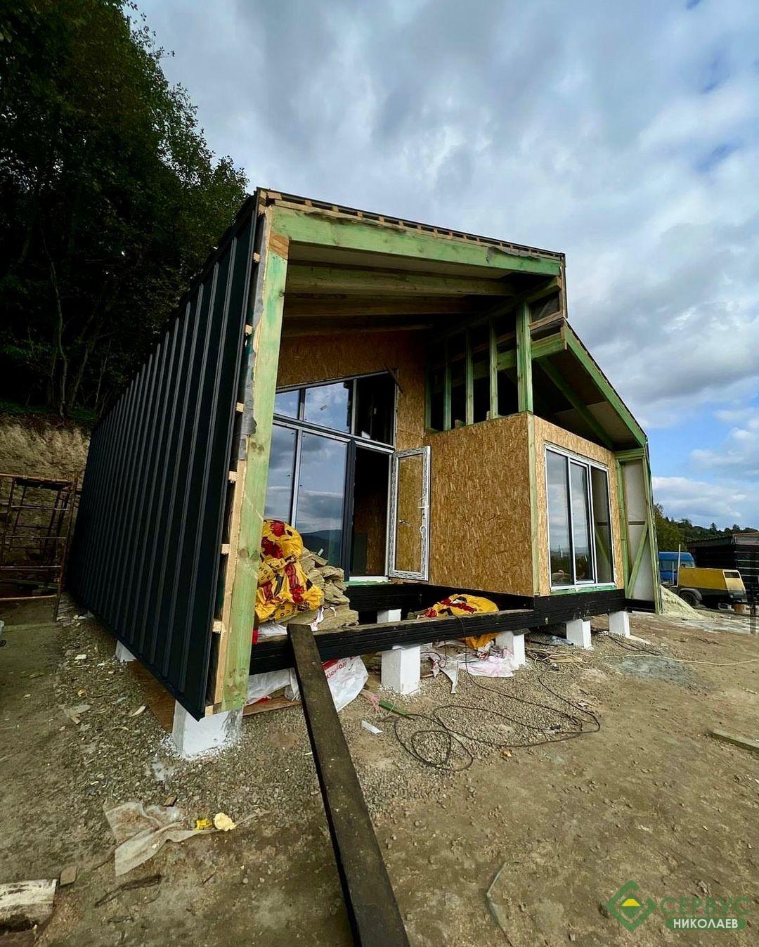 На примере одного из наших проектов: три дома отдыха площадью 72, 65 и 58 кв. м, построенные в Карпатах. Благодаря данной технологии, строительство заняло всего 2 месяца, что позволяет бизнесу быстрее начать работу.