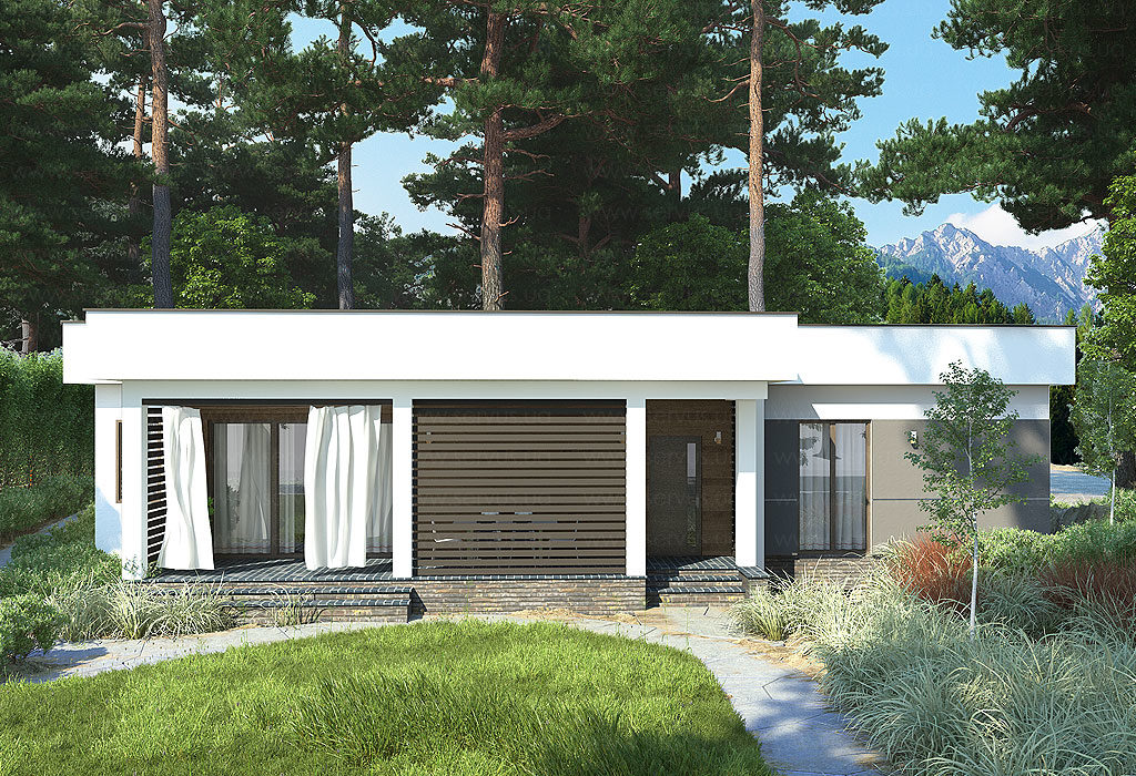 Проект Тусон — это современный дом в стиле хайтек с просторной террасой для отдыха, имеет сообщение с большой комфортабельной кухней-гостиной. В доме предусмотрено 2 спальни с автономными санузлами.