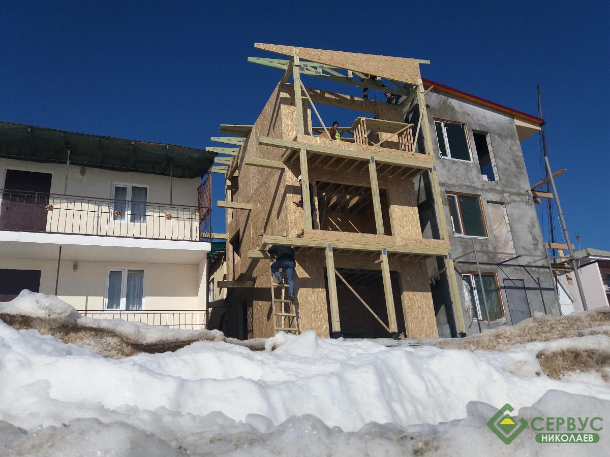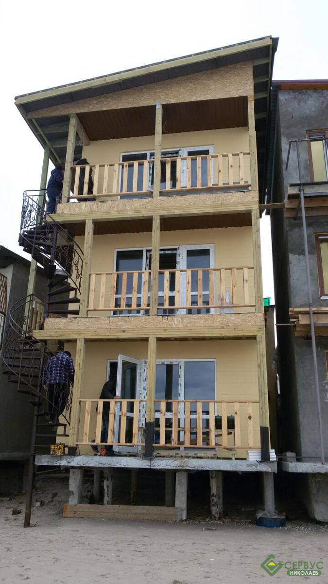 В курортном городке Затока, Одесской обл., построен еще один объект от компании Сервус. Теперь, гости этого городка могут остановится в гостинице прям на берегу моря. Трехэтажная гостиница, общей площадью 113 м2, вместила в себя 4 номера с балконами, кухню-гостиную и сан. узел. На строительство ушло 3 месяца и уже этим летом гостиница работала.