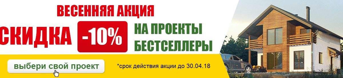 У нас стартовала отличная акция на самые популярные, современные, практичные 10 проектов-бестселлеров - скидка на домокомплект 10%! У Вас есть отличная возможность до 30.04.18 приобрести домокомплект по очень выгодной цене.